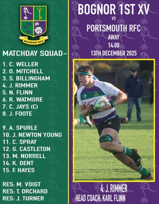 Our 1st XV will be looking for another win on the road at Portsmouth RFC (2pm kick off) today, underpinning their form and performance this season.