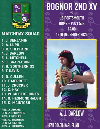 Our 2nd XV will be looking to get back to winning ways, with an exciting home game against US Portsmouth (2 pm kick off).